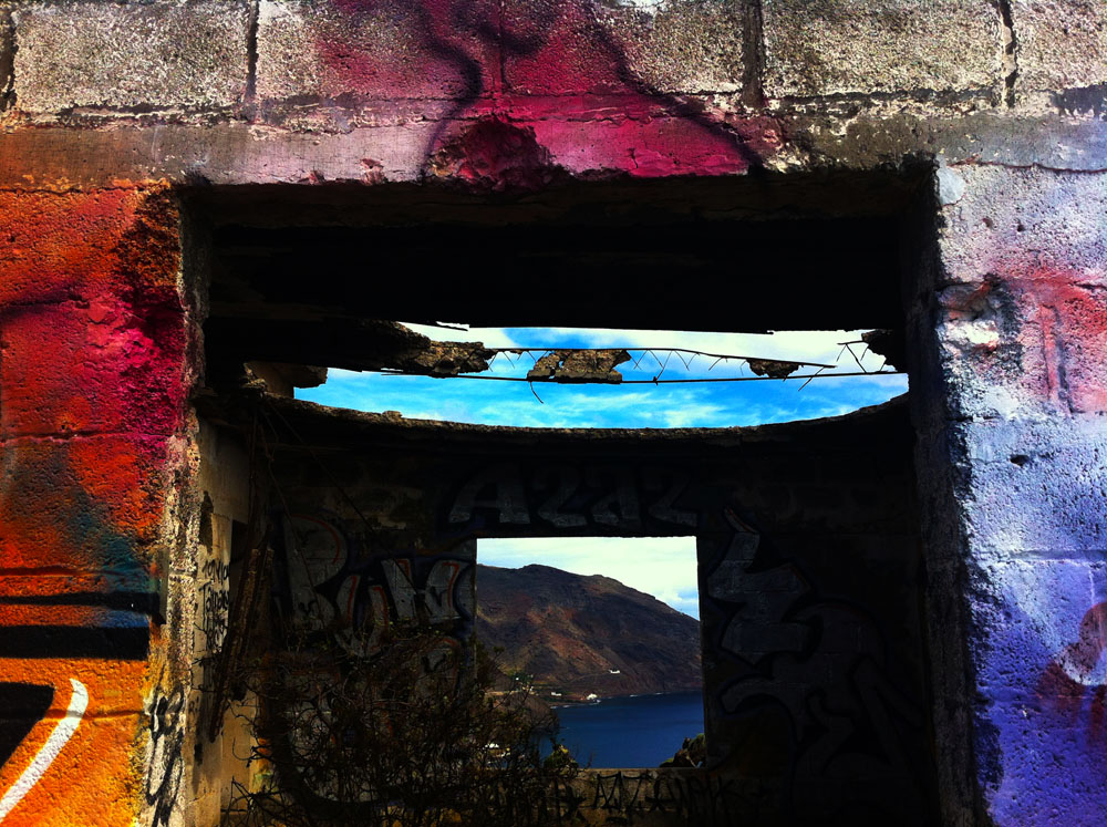 Desde el punto de vista de un mirador, la vida es bella. Y precisamente para verla así suelo acudir a uno en concreto, fuera de Santa Cruz. Tan a menudo como puedo me cuelgo de él y paso un rato aniquilada por un bocadillo, que es como mejor se vive el momento. Yo comencé a asimilar perspectivas de altura no hace muchos años, cuando de novata me llevaron a probar Humboldt, Ayosa y Cruz del Carmen. Luego, ya con la inercia en quinta, seguí por mi cuenta y riesgo en claro ascenso hacia una nueva rutina. Los miradores ofrecen paisajes que crean expectativas de algo mejor, y eso relaja pulsaciones y amortigua ruidos. Y ya está. No hay mucho más que esto. Pero es suficiente. En Santa Cruz también subí a uno que me aconsejaron cuando empecé a vivir aquí: el de La Piconera, más conocido como el de Las Teresitas. En cuanto me lo situaron en el mapa, cogí coche y ganas y me planté de golpe en aquel lugar funesto. Espacio ruinoso, de eternas y oscuras ojeras. A mí me impactó mucho porque jamás había estado en un mirador que odiase tanto la vida. Así que me fui de allí y nunca volví. Hasta esta semana, que me ha dado por regresar y acercarme al borde entre cristales y basura. Este trozo de tierra abismal sostiene en equilibrio a la Playa de Las Teresitas en su mano derecha y a la Playa de Las Gaviotas en su siniestra. Juega así con el horizonte, situando al mar en primer término y a una parte de ciudad al fondo y a la diestra. Pero en cuanto cierras la ventana, el mirador se retuerce entre despojos de piedra y cemento, peligrosos recovecos y rincones malcarados y malolientes que apremian a los visitantes a que hagan la foto y se larguen cuanto antes. Las construcciones que aún se mantienen en pie están llenas de pintadas que piden a gritos revolución. Ahí está, por ejemplo, el subversivo de V de Vendetta. Hace once años que el propietario de todo aquello se puso en contacto con la Gerencia de Urbanismo para saber qué tenía que hacer para embellecer la zona y abrir un restaurante. Pero ahí se quedó el interés. O el dinero. O las influencias. O la especulación. Desde el mirador esas cosas no se ven bien.