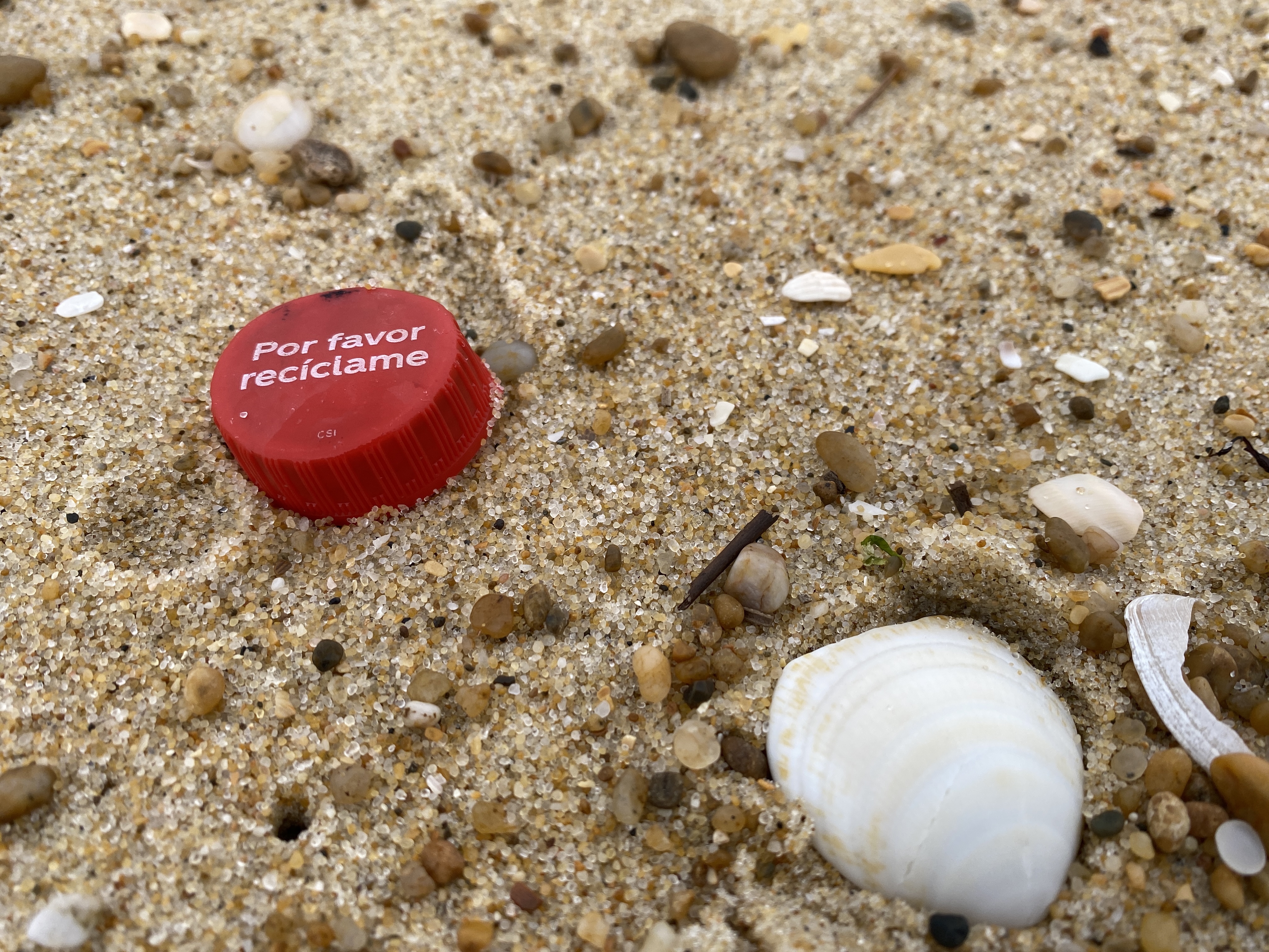 Surgió el desencanto cuando vi el primer tapón de plástico en la arena. Lo cogí y lo guardé para tirarlo al volver del paseo. Pronto me encontré con otro y con otro y con otro más… y así. El perro aquel seguía en su felicidad, desenvolviéndose muy bien en el inmenso espacio mojado por las olas. Pero yo ya no atendía a sus piruetas, sino que miraba hacia abajo, alucinada por la cantidad de plásticos que la marea había traído o se iba a llevar o las dos cosas.